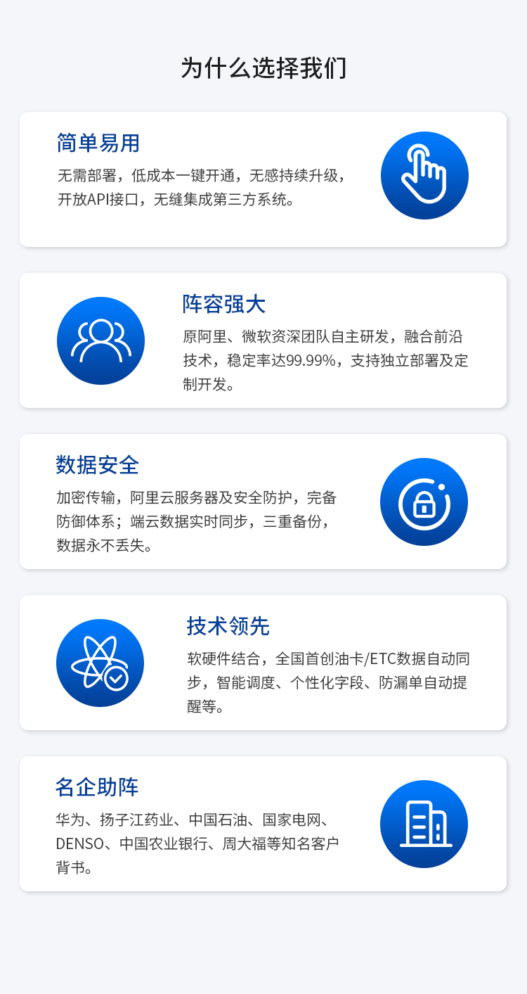 首家引入大模型技术,智能调度、ETC/油卡自动同步、里程/磅单自动识别,个性化字段一应俱全,打造智能管理新标杆。