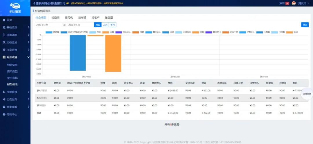 针对租赁用车,车队管家除以上管理方案外,还提供财务结算系统,供单位和租赁公司之间进行费用结算。