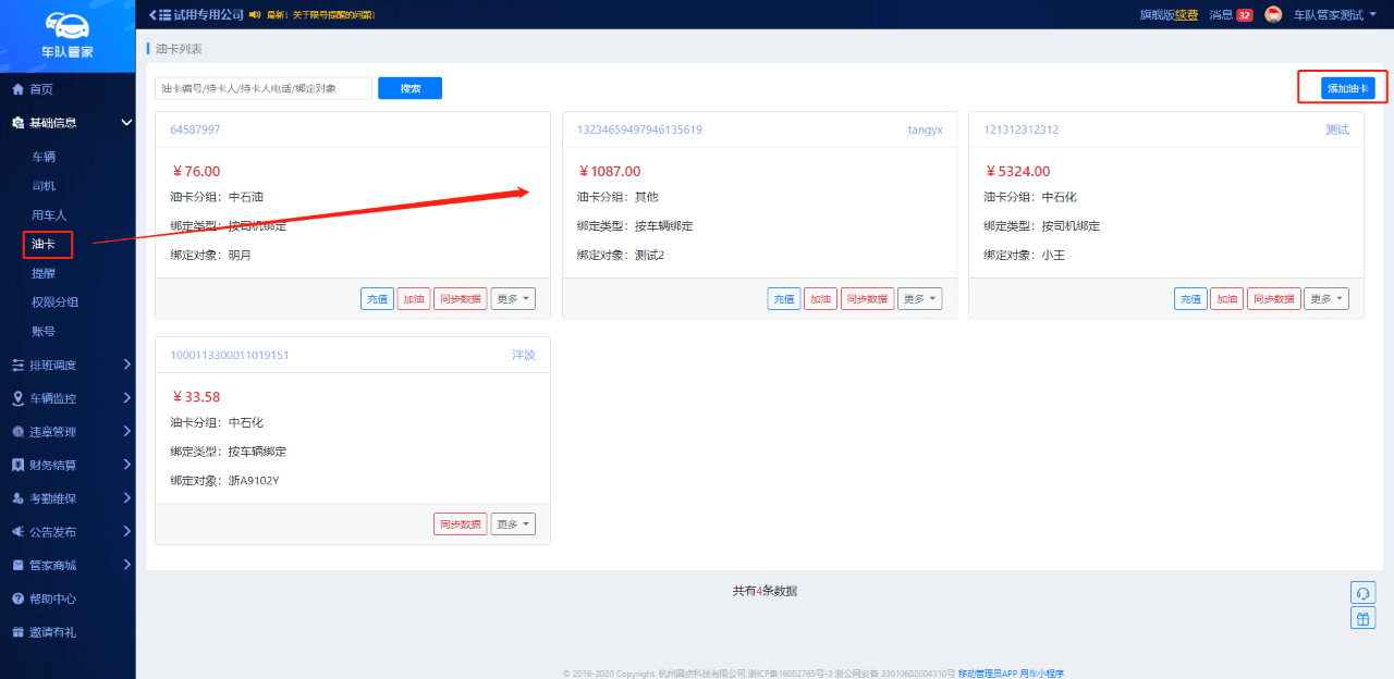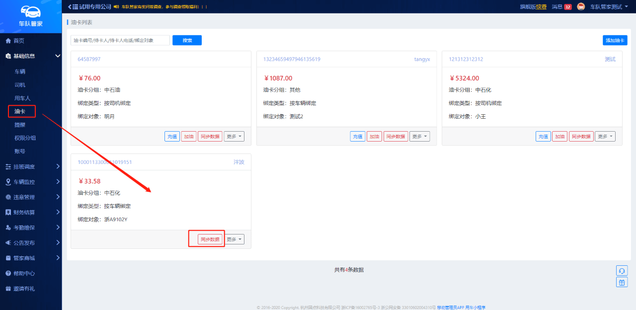 目前,中石化所有相关数据已可实时同步至车队管家系统,今后还会陆续接入中石油等油卡数据。